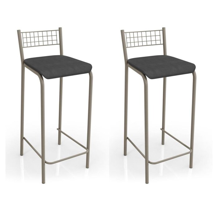 Kit com 2 Banquetas Estofadas Gênova Cor Nickel 2b705nk Kappesberg Crome - Niquel/courino Preto