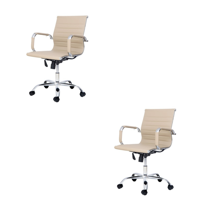 Kit com 2 Cadeira Diretor Charles Eames Esteirinha Couro Pu 11d Nude