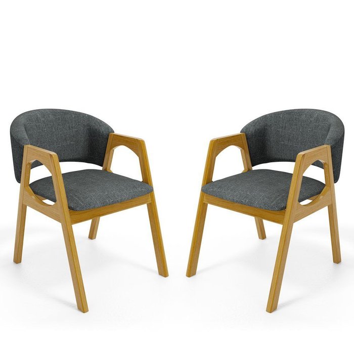 Kit Com 2 Cadeiras Agatha Madeira Maciça Estofada Para Mesa De jantar Linho Chumbo 406 - Cadeiras Para Sala De Jantar Estofadas