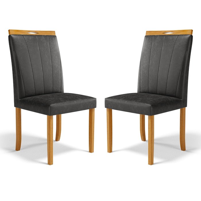 Kit Com 2 Cadeiras Aurora Madeira Maciça Estofadas Para Mesa De Jantar Courino Preto 503 - Conjunto Kit Com 2 Cadeiras De Sala De Jantar Estofadas