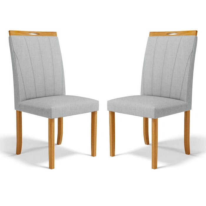 Kit Com 2 Cadeiras Aurora Madeira Maciça Estofadas Para Mesa De Jantar Linho Cinza 407 - Conjunto Kit Com 2 Cadeiras De Sala De Jantar Estofadas