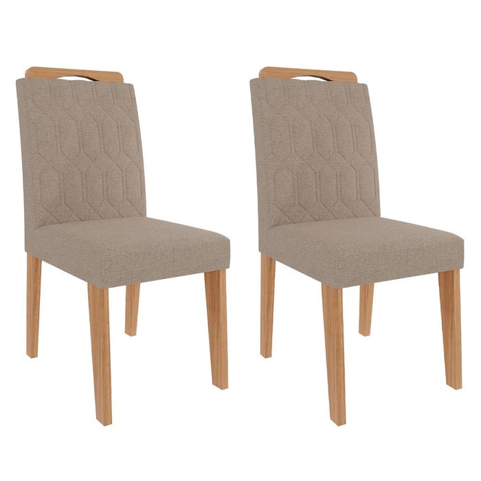 Kit com 2 Cadeiras Estofadas em MDF Paola Nature/Linho Bege Cimol