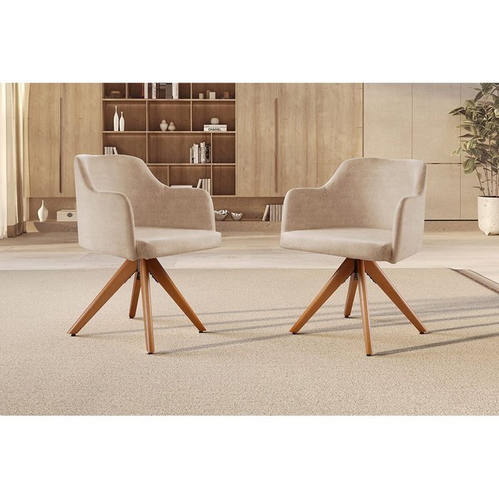 Kit com 2 Cadeiras Giratória Eros para Sala de Estar Bege