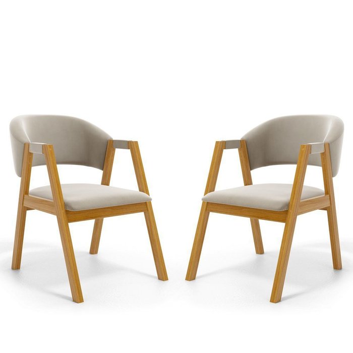 Kit Com 2 Cadeiras Leticia Madeira Maciça Estofada Para Mesa De jantar Veludo Bege 102 - Cadeiras Para Sala De Jantar Estofadas
