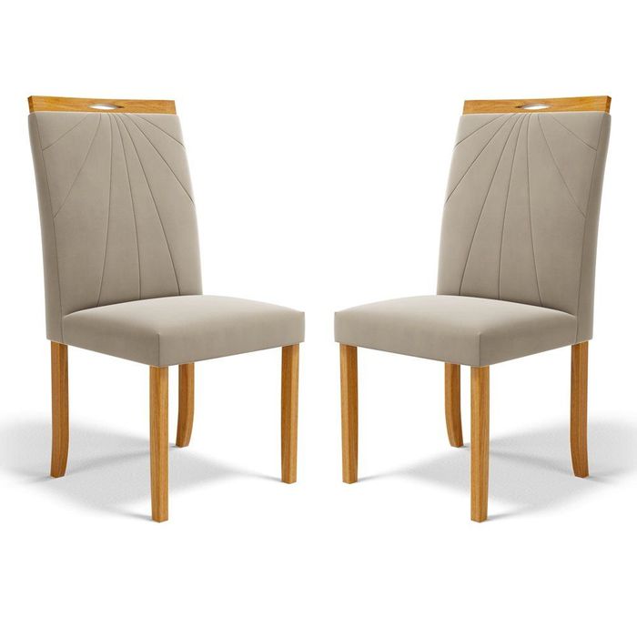 Kit com 2 Cadeiras Maiara Madeira Maciça Estofadas para Mesa de Jantar Veludo Bege 102