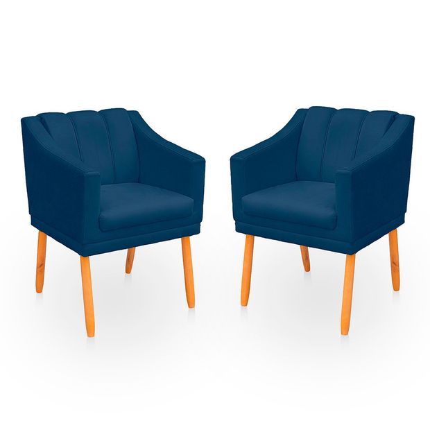 Kit com 2 Cadeiras Poltrona para Sala Moderna e Confortável Mila Suede Azul