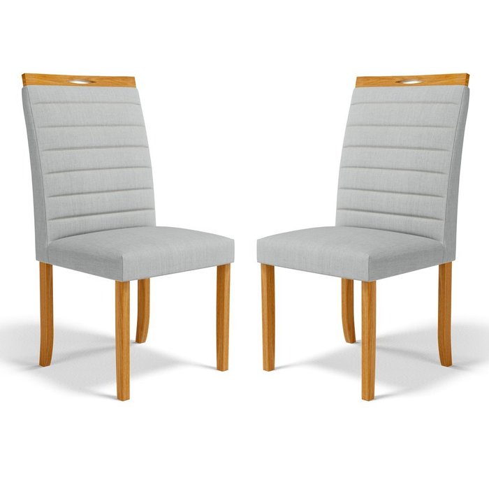 Kit com 2 Cadeiras Sara Madeira Maciça Estofadas para Mesa de Jantar Linho Cinza Claro Cod. 407