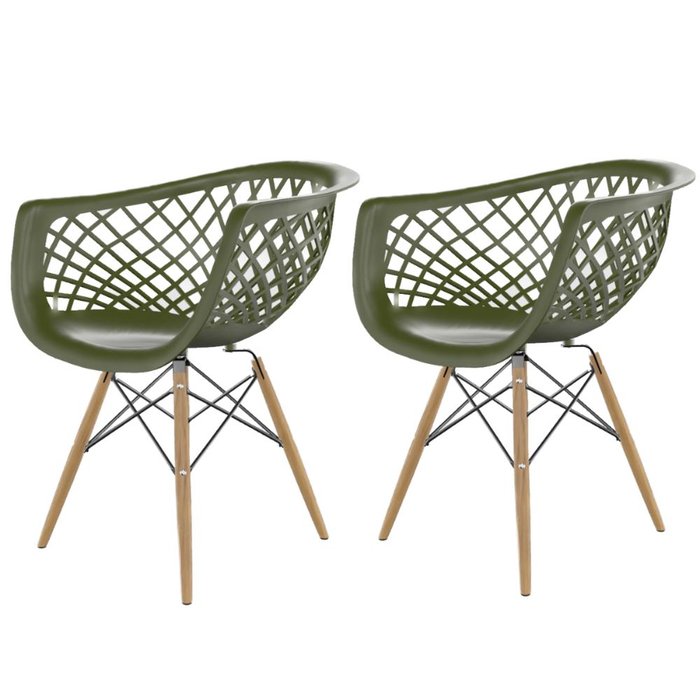 Kit com 2 Cadeiras Web com Pés de Madeira Verde Militar