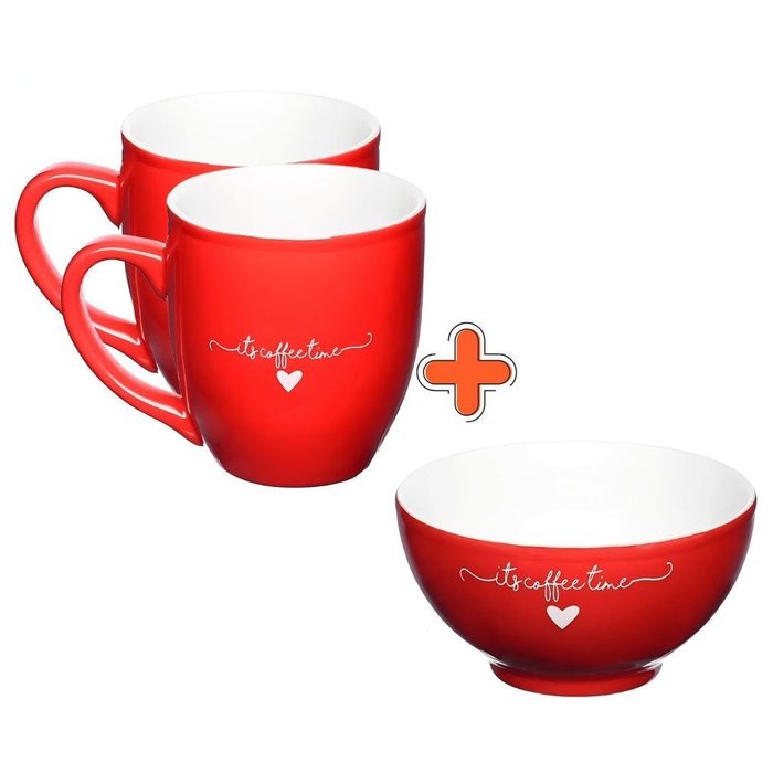 Kit com 2 Canecas 300ml + Tigela Bowl 440ml L'amour em Porcelana Vermelho