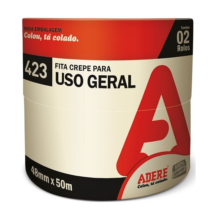 Kit com 2 Fita Crepe Larga Uso Geral e Pintura 48mm X 50m Adere