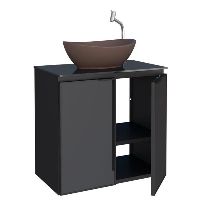 Kit com 2 Gabinetes para Banheiro em Aço 2 Portas com Tampo de Vidro e Porta de Vidro sem Cuba Umbu Preto