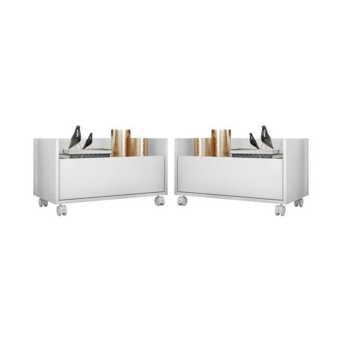 Kit com 2 Mesas de Cabeceira 60cm com Rodízios Multimóveis Branca