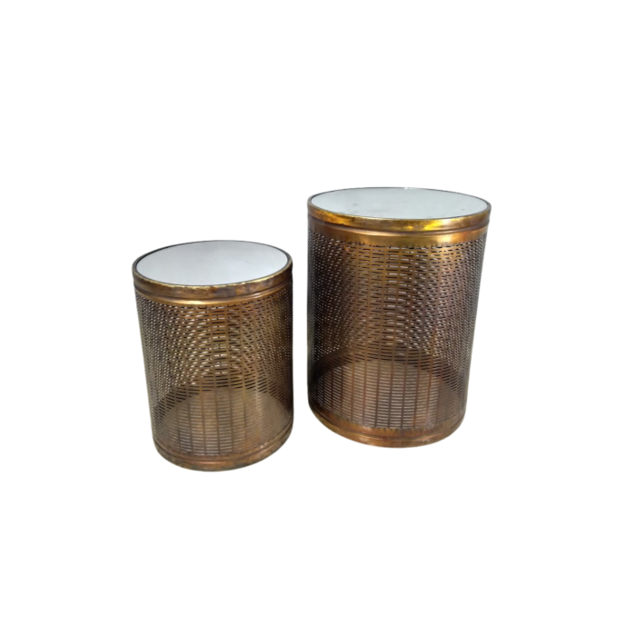 Kit com 2 Mesas Redonda Ferro com Espelho 48,5x62cm 39,5x49cm Bekasa W3605