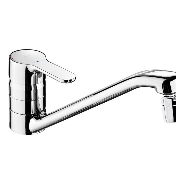 Transforme seu espaço em um refúgio de elegância, modernidade e praticidade com o Monocomando para Cozinha de Mesa Bica Baixa com Arejador Articulado L20 Roca