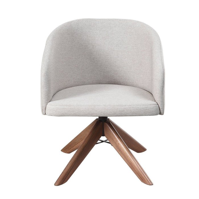Kit com 2 Poltronas Giratórias Zara em Madeira Castanho – Exclusiva Linho Palha Castanho