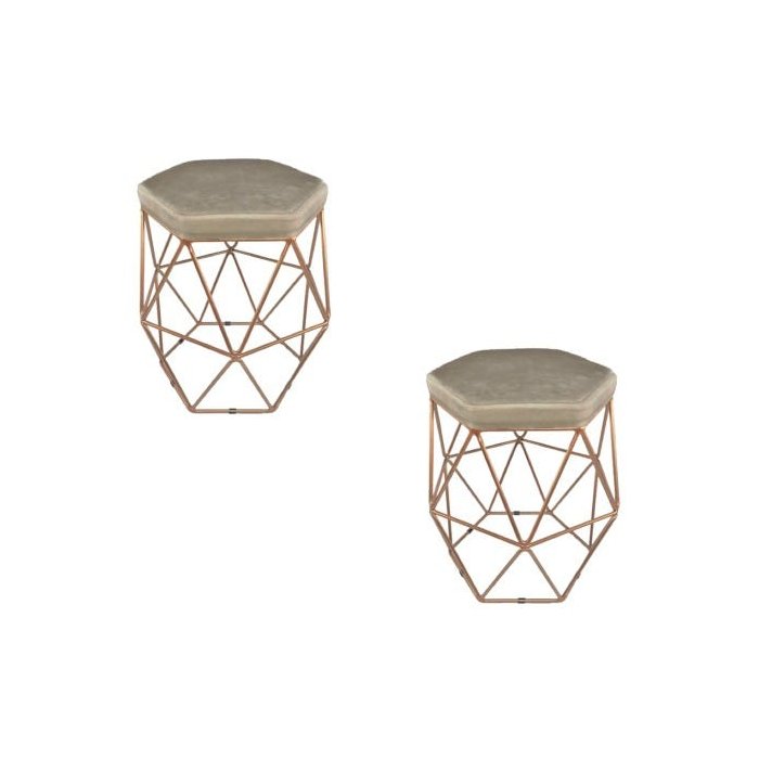 Kit com 2 Puffs Aramados Hexagonais Capuccino - Zahav Estofados