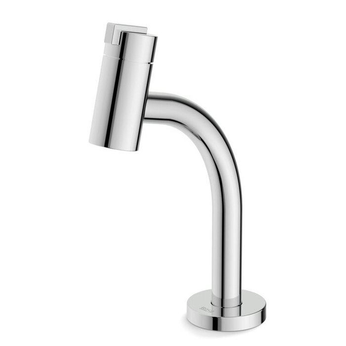 A torneira de lavatório de mesa bica baixa da linha New Singles da Roca combina estilo com funcionalidade. Fabricada em metal cromado, seu design redondo e mecanismo de acionamento por alavanca oferecem praticidade e durabilidade. Disponível na cor Cromado, é ideal para banheiros que buscam um toque contemporâneo."