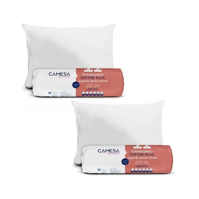 Kit com 2 Travesseiros Camesa Cotton Plus Suporte Extra Firme Antialérgico 50x70cm