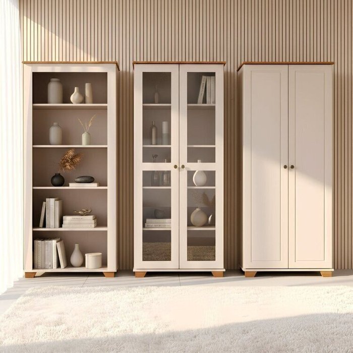 Kit com 3 Armários Multiuso Pés e Tampo em Madeira Maciça Ananda CabeCasa MadeiraOriginals Off White/Mel