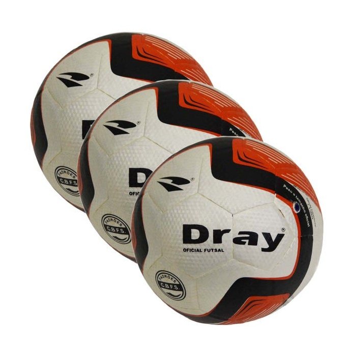 Kit com 3 Bolas Infantis Dray Oficial Maxi 100 Futsal - Branco / Vermelho