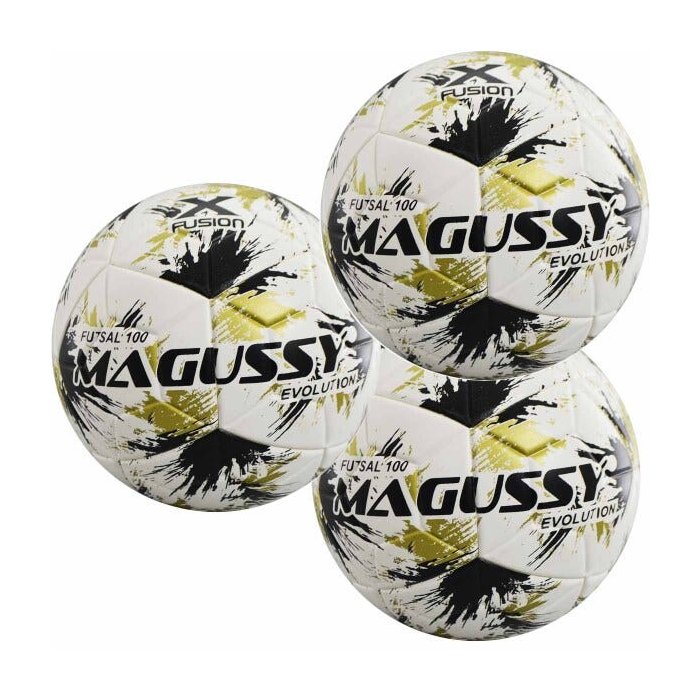 Kit com 3 Bolas Infantis Magussy Evolution X-fusion Max 100 Futsal Sub 11 - Único - Branco / Preto