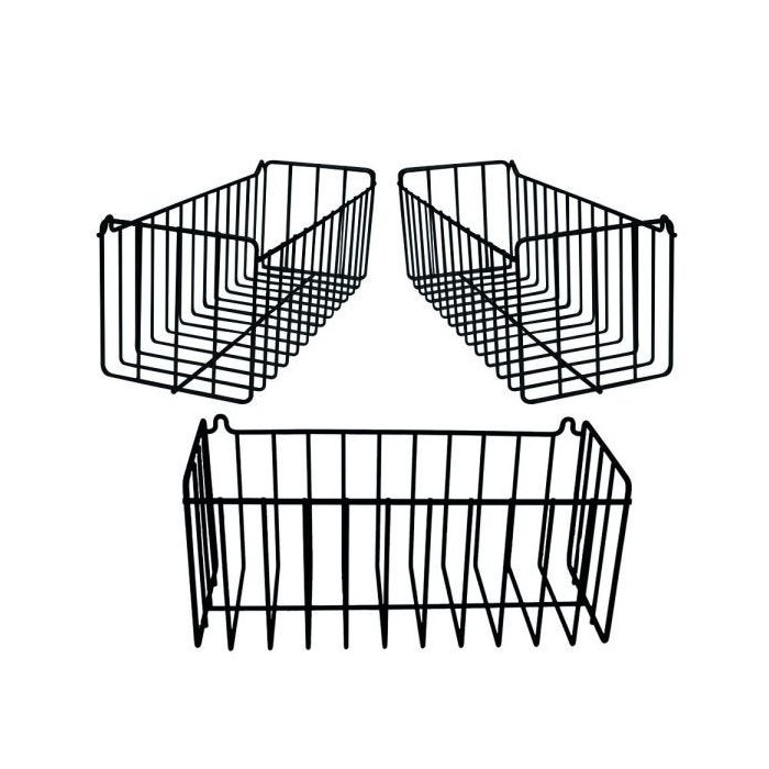 Kit Com 3 Cestos Aramado De Parede Lavanderia Cozinha N3 Preto