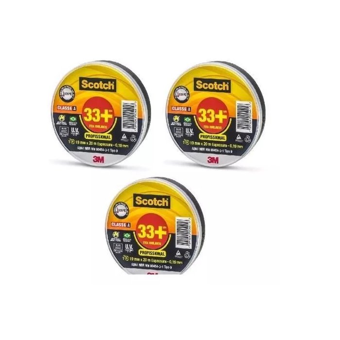 Kit com 3 Fita Isolante 3m Scotch 33+ 19mm X 20m