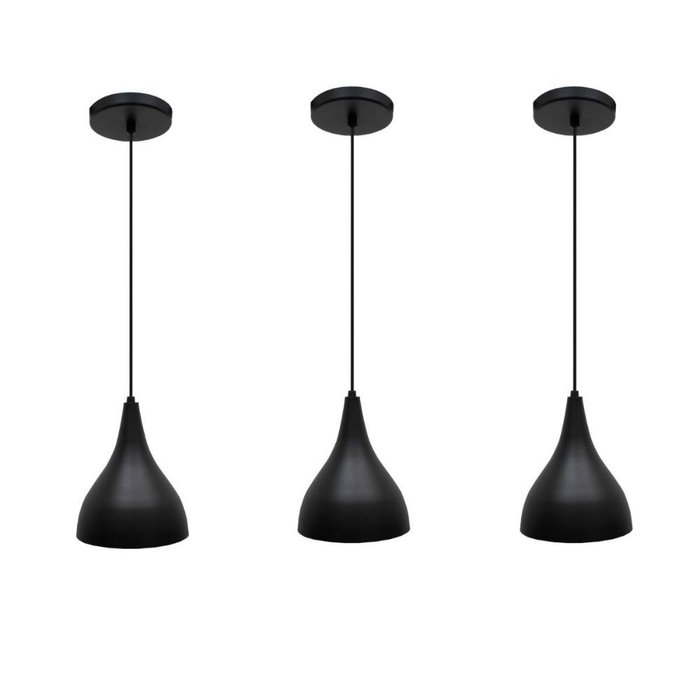 Kit com 3 Luminária de Teto Pendente Cone 620 Alumínio com Pintura Eletrostática Soquete E27