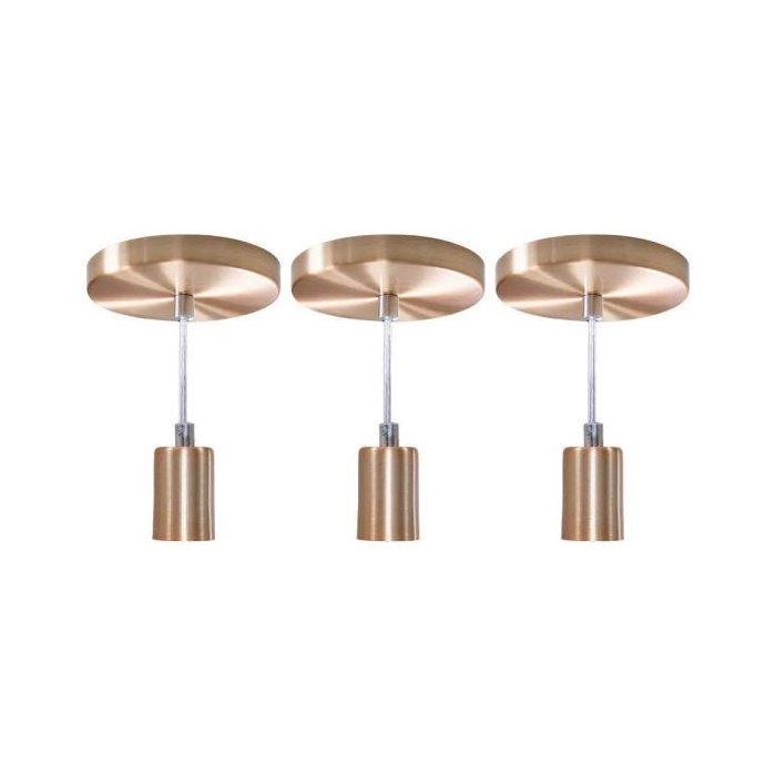 Kit Com 3 Pendentes Tubo Cilindro Alumínio 6cm E27 Cobre Escovado St458