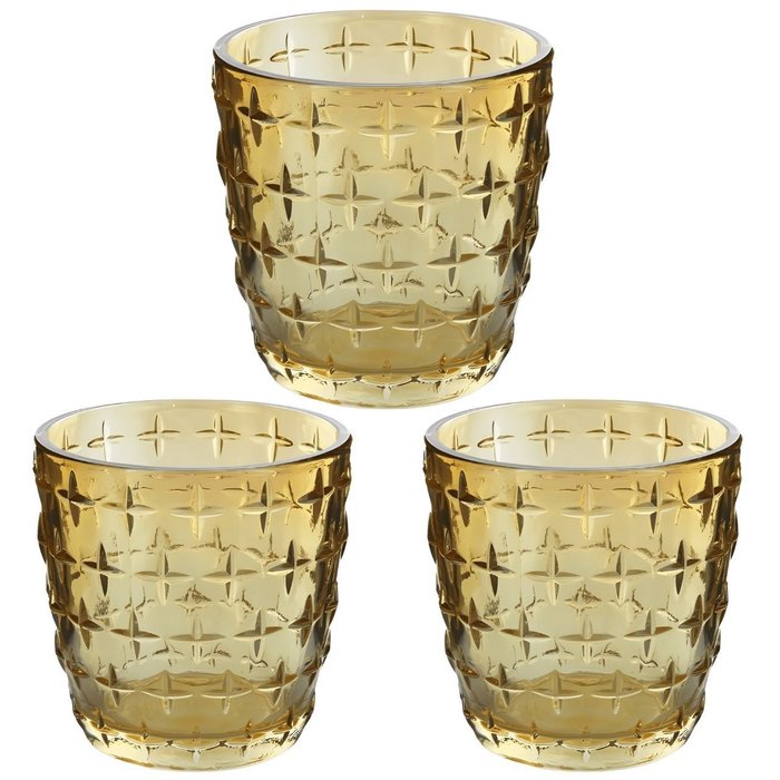 Kit com 3 Porta Vela Decorativo em Vidro Âmbar 7,5 X 7cm Âmbar