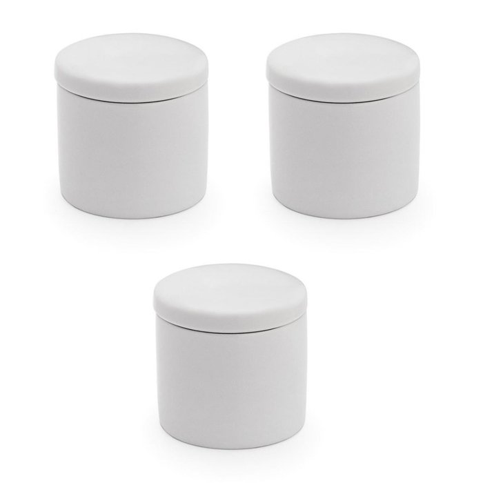 Kit com 3 Pote Porta Algodão de Porcelana com Tampa Branco