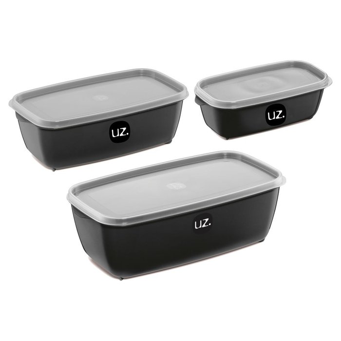 Kit com 3 Potes Multiuso Retangular com Tampa Uz-k002 Uz Utilidades Preto