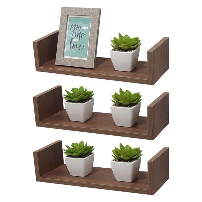 Kit com 3 Prateleiras U com Suporte Invisível 40x20cmnogal Marrom