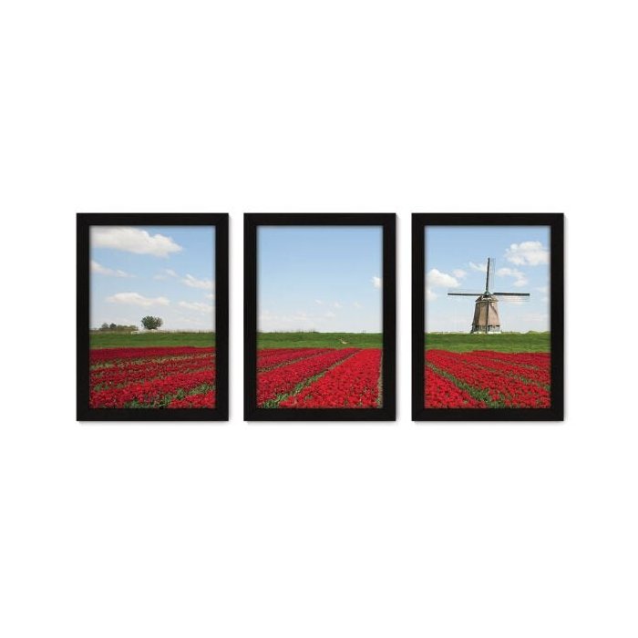 Kit Com 3 Quadros - Campo Moinho Paisagem