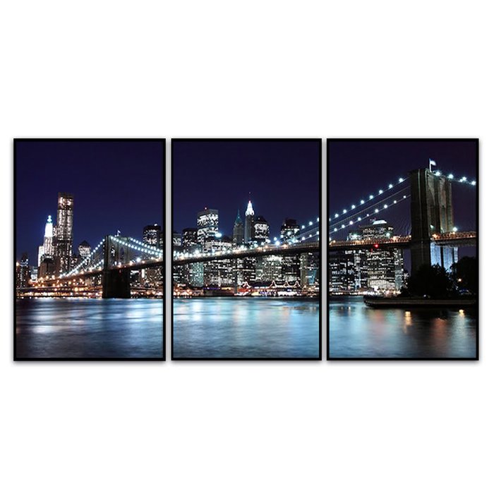 Kit com 3 Quadros Decorativos 70x50 Cm Paisagem New York com Moldura Caixa Preta de 3cm Profundide