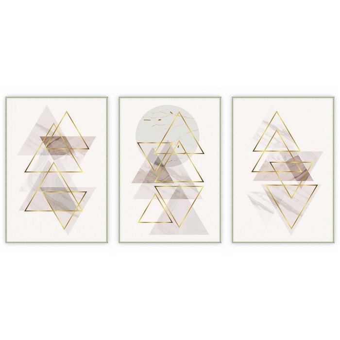 kit com 3 Quadros Decorativos Abstratos com Moldura e Vidro para Sala Quarto Escritório e Clínica 72
