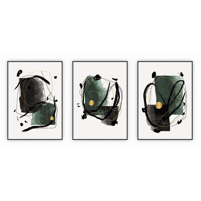 | Modelo | Quadro Trio Decorativo Abstrato Moldura Vidro Sala Escritório Clínica |