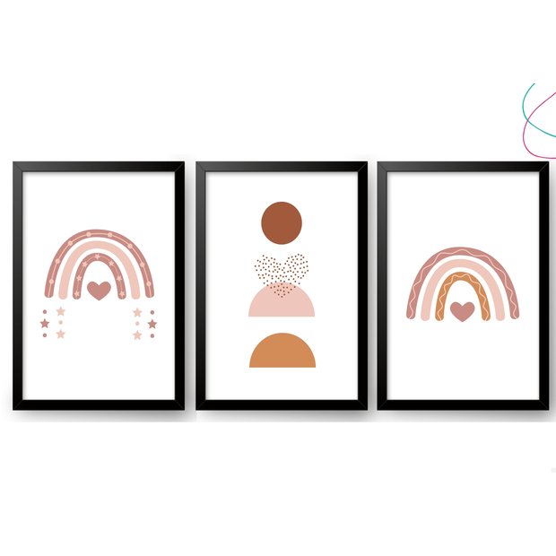 Kit com 3 Quadros Decorativos Arco-íris Escandinavo Moldura: Preta Preta