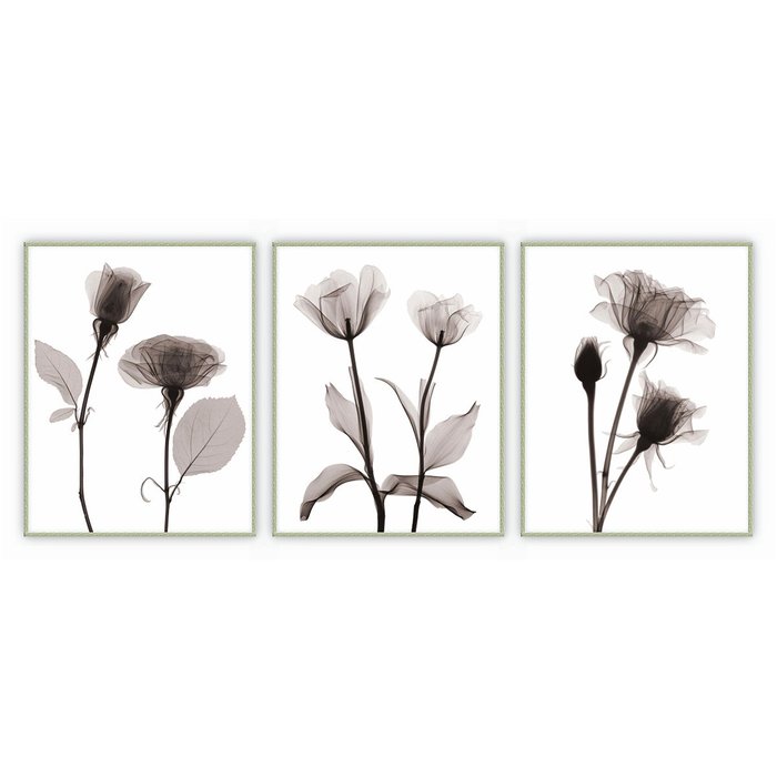 | Modelo | Quadro Trio Decorativo Florais Moldura Vidro Sala Escritório Clínica |