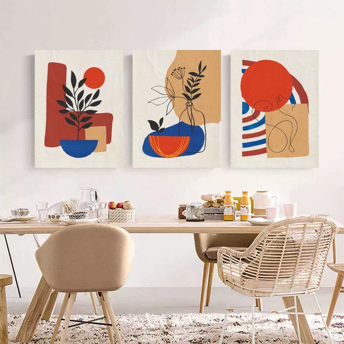 Kit com 3 quadros medindo 60x45cm que foram pintados manualmente para decoração estilo painel