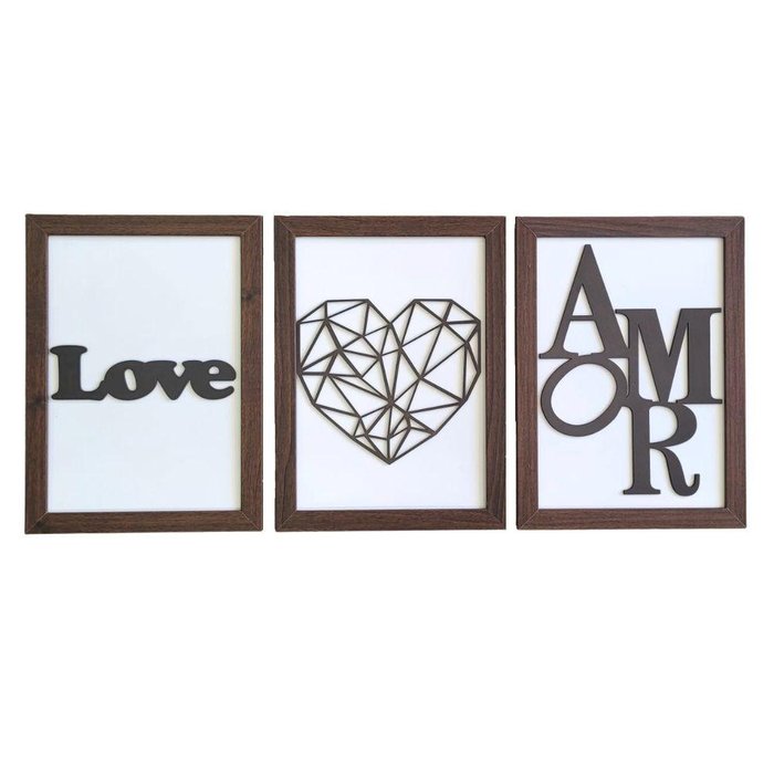 Kit com 3 Quadros Personalizados em Mdf (33x24,5) Kit 3 Quadros 1 - Marrom -