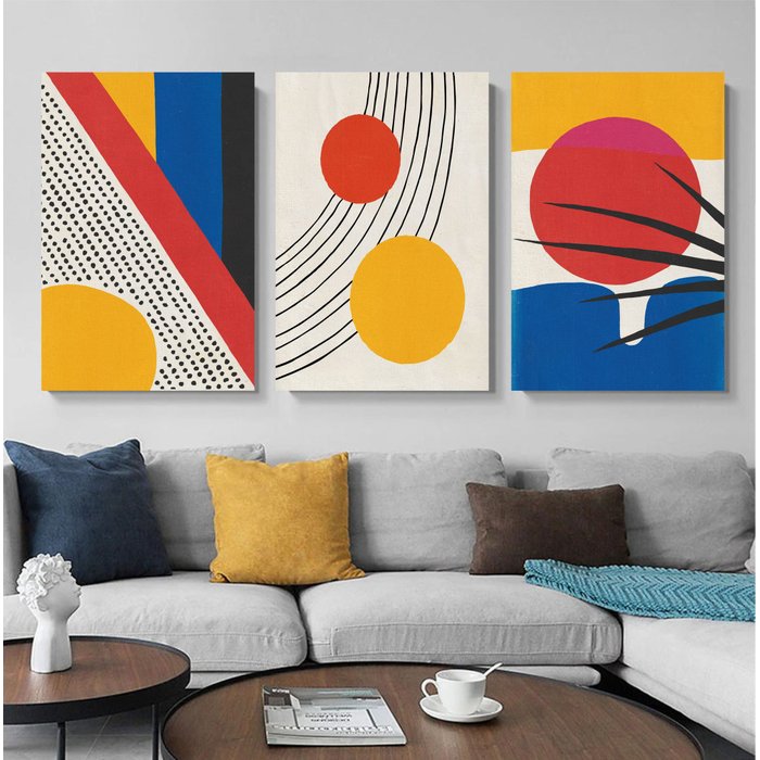 Kit com 3 quadros pintados a mão em estilo moderno minimalista para decoração medindo 90x60cm cada