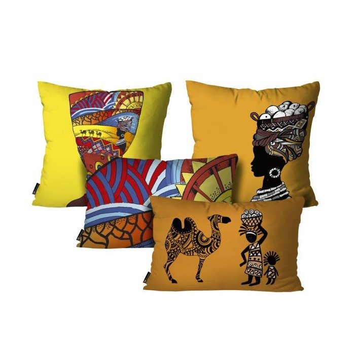 Kit com 4 Almofadas Africanas Colorido DEC4105