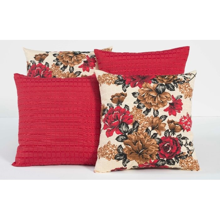 Kit com 4 Almofadas Decorativas Estampa Vermelho com Flores Coloridas