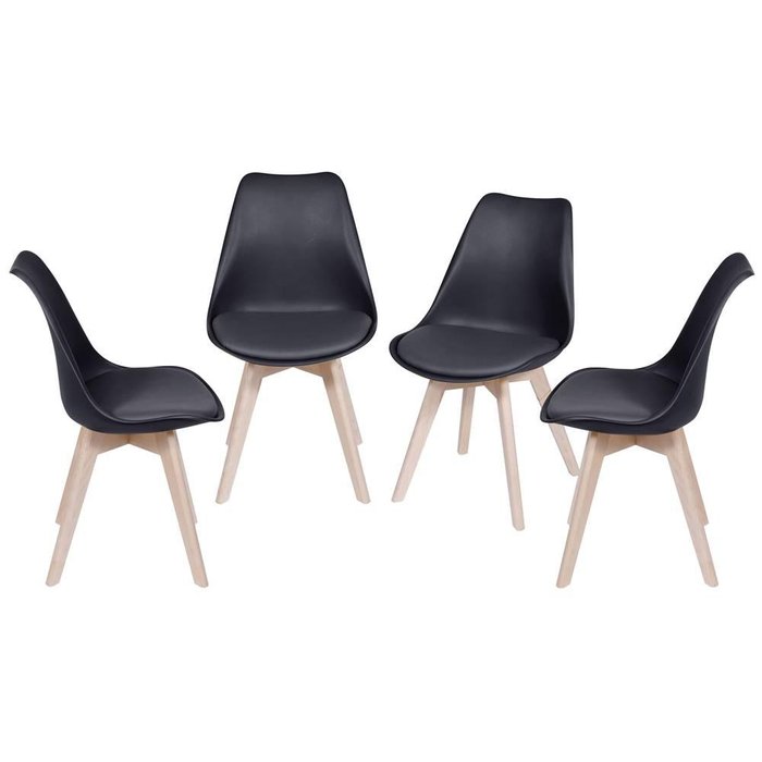 Kit com 4 Cadeiras Leda Eames PP Preta Base Madeira