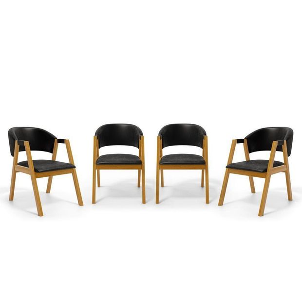 Kit Com 4 Cadeiras Leticia Madeira Maciça Estofada Para Mesa De jantar Courino Preto 503 - Cadeiras Para Sala De Jantar Estofadas