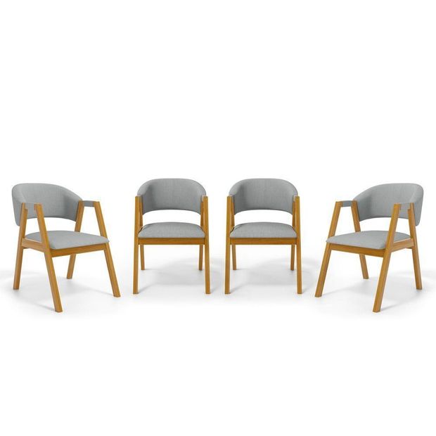 Kit Com 4 Cadeiras Leticia Madeira Maciça Estofada Para Mesa De jantar Linho Cinza 407 - Cadeiras Para Sala De Jantar Estofadas