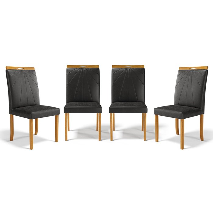 Kit com 4 Cadeiras Maiara Madeira Maciça Estofadas para Mesa de Jantar Courino Preto 503