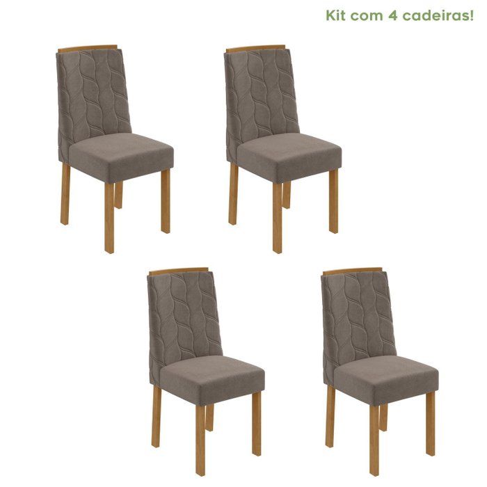 Charme e elegância vão completar sua sala de jantar com este atraente Conjunto com 4 Cadeiras Astrid. Você poderá recepcionar amigos, familiares e convidados e, ao mesmo tempo, dar um up na decoração do ambiente, deixando-o mais sofisticado e aconchegante.