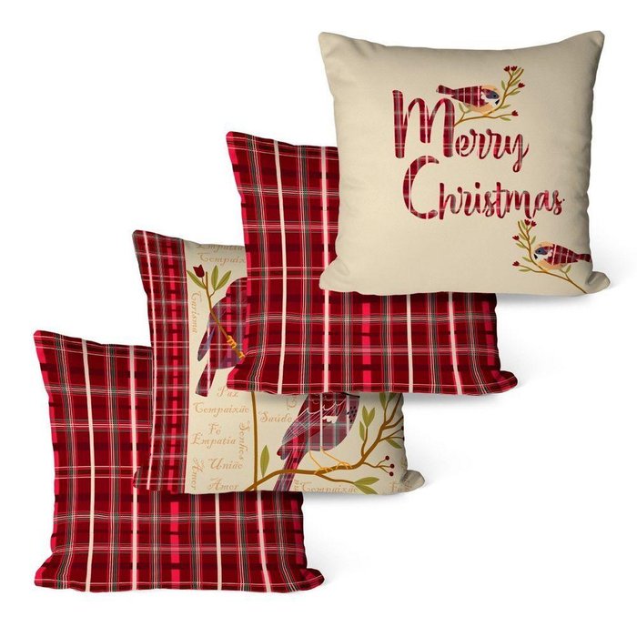 Kit com 4 Capas para Almofadas de Natal Xadrez Passarinho 45cm X 45cm